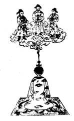 次思金光從兆泥丸中入,兆乃口吸神雲,咽津三過,結作三神,一神狀如秀士,紅錦抱,玉束帶,二神侍立,下入左乳,穿絳官,入右勝胱,却入左膀胱,上穿絳官,入右乳內,過肺之後戶,順時吐息。