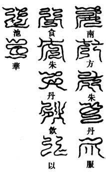 南方朱丹云:服食朱丹,飲以池華。以舌撩下齒表,舐唇漱口,令玉芝滿口,而三咽之。又引赤O三咽,令鎮心中。